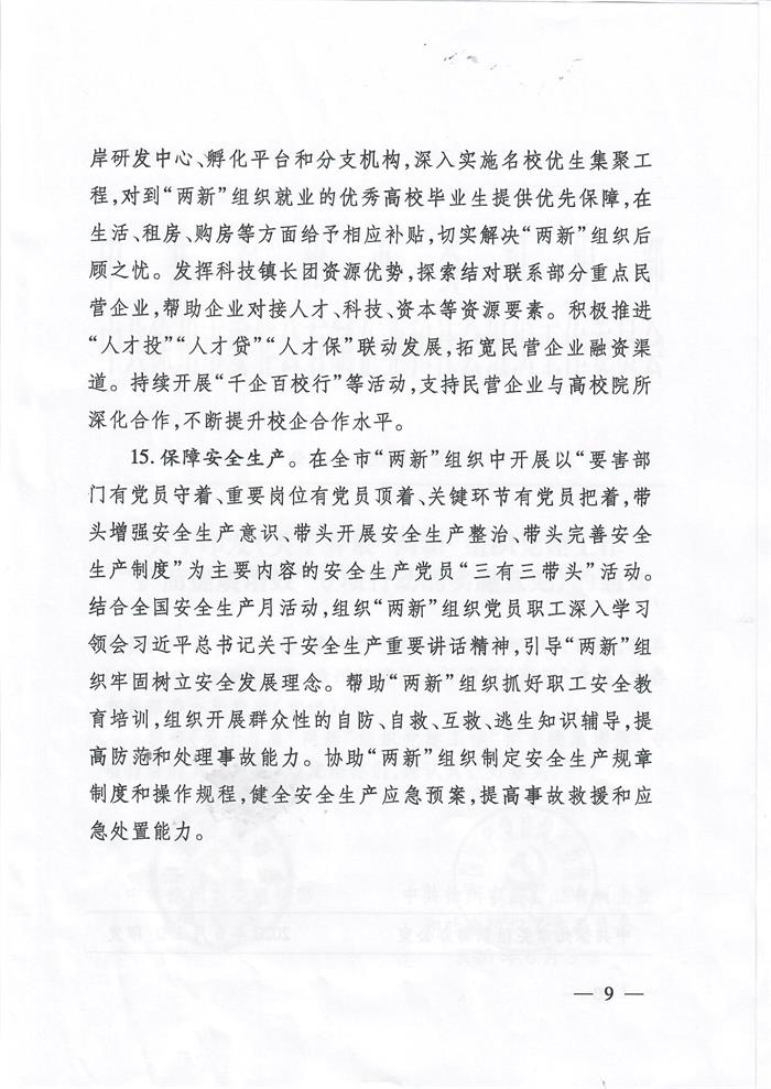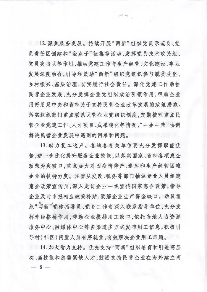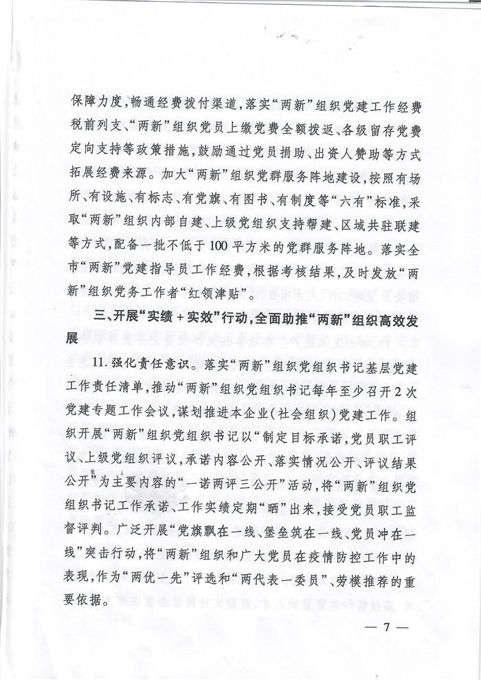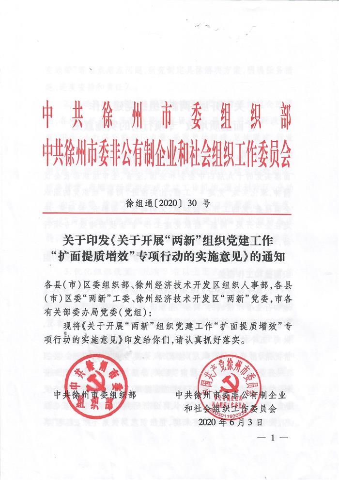 关于印发《关于开展“两新”组织党建工作“扩面提质增效”专项行动的实施意见》的通知